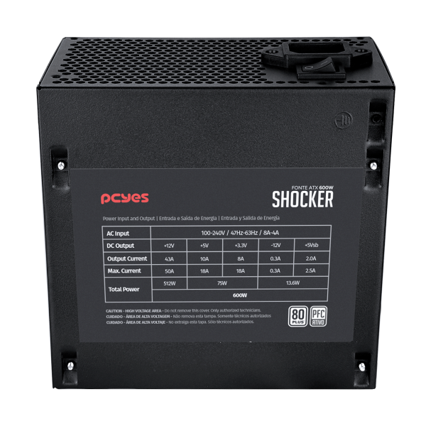 Certificação 80Plus Standard, eficiência: >80%, PFC ativo