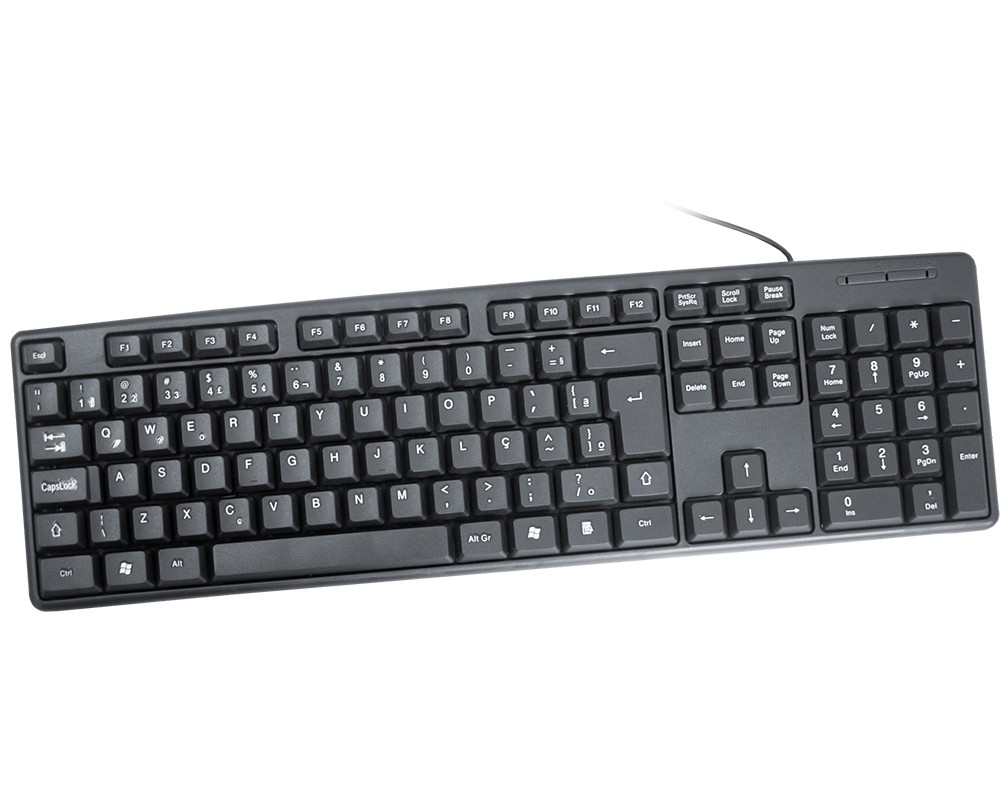 Teclado preto com fio. Padrão ABNT2